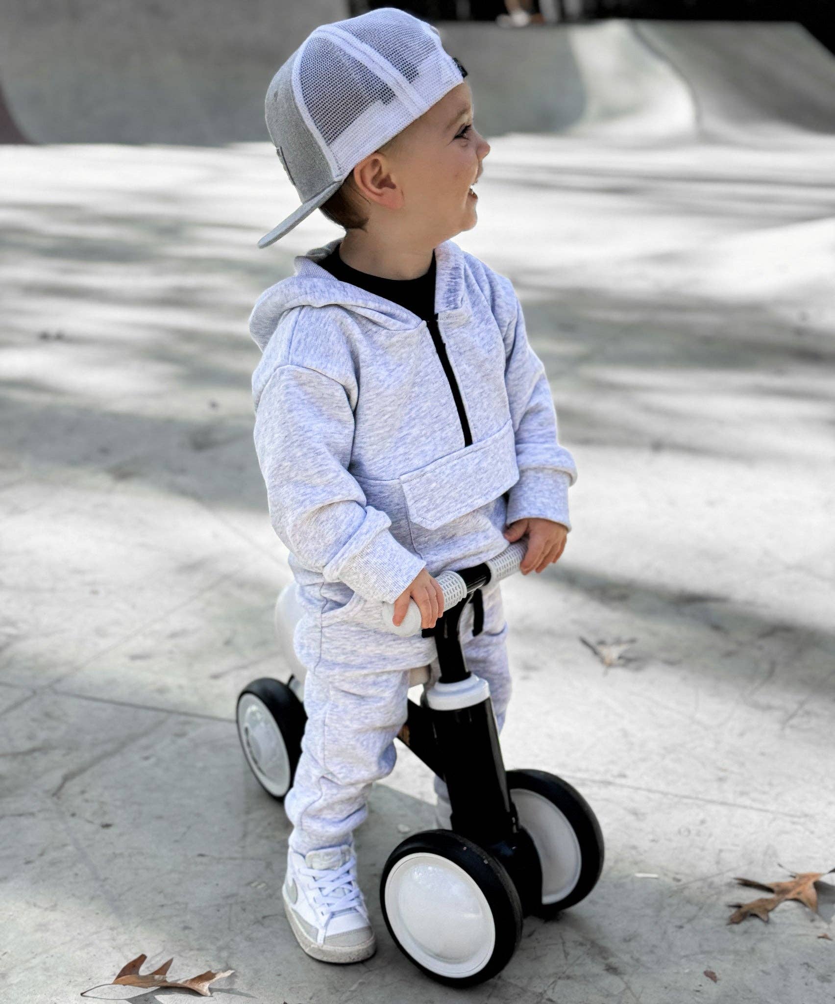 This heather gray half zip hoodie is your new go-to for laid-back comfort, featuring a bold bolt-shaped zipper pull that adds a spark of personality. Perfect for layering or flying solo, it's the kind of piece that makes you smile every time you reach for it.